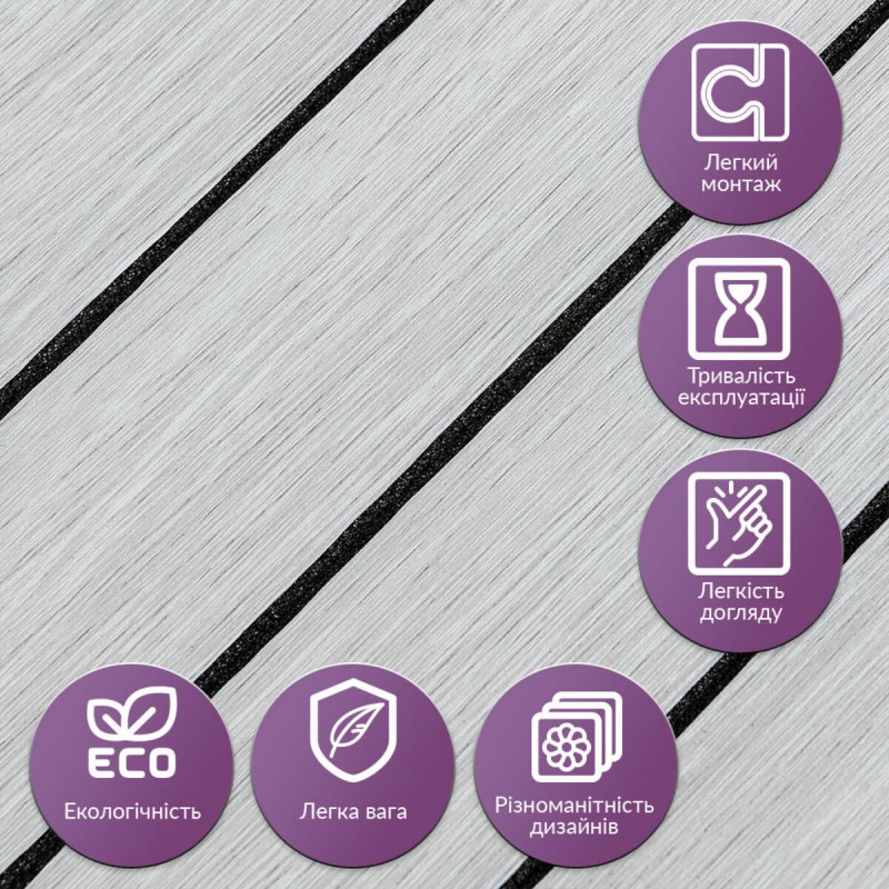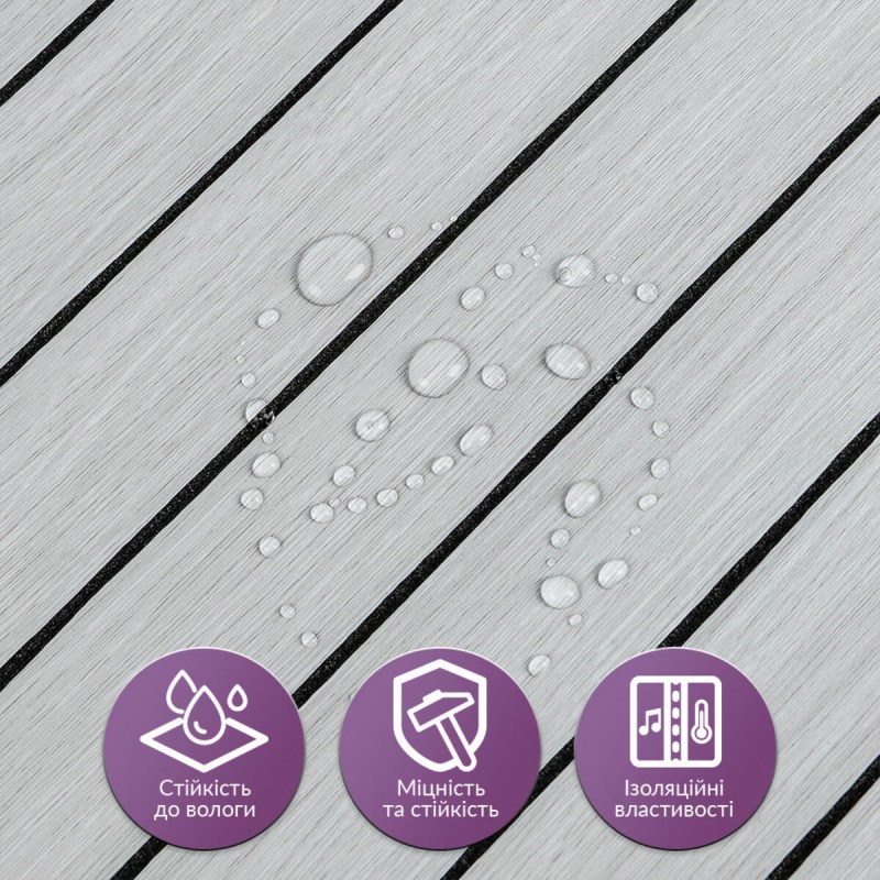 • Легкий догляд: Вінілові рейки легко миються, не вимагають спеціальних засобів для очищення і не вбирають бруд.