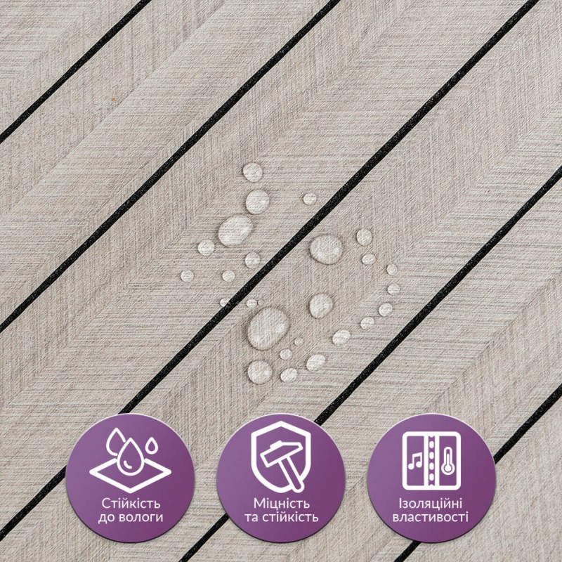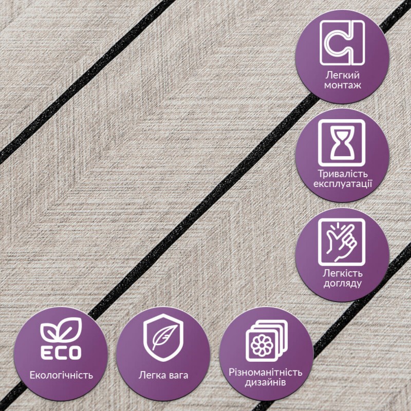 • Легкий догляд: Вінілові рейки легко миються, не вимагають спеціальних засобів для очищення і не вбирають бруд.