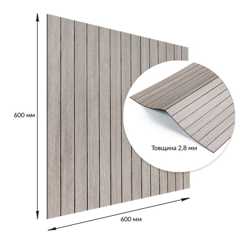 Площа покриття: 600х600 – 0,36 м², 600х3000 мм – 1,8 м²