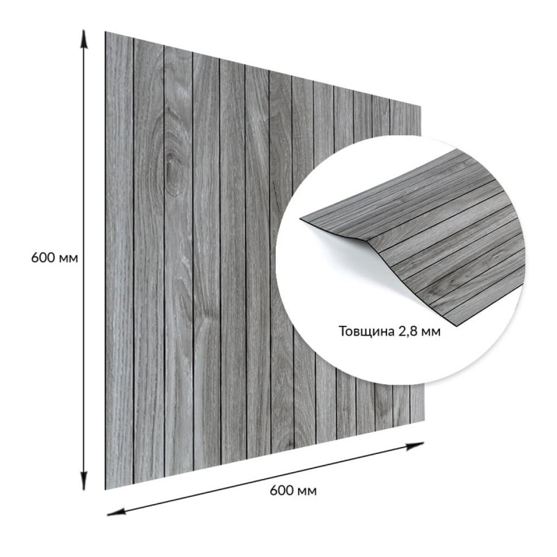 Площа покриття: 600х600 – 0,36 м², 600х3000 мм – 1,8 м²