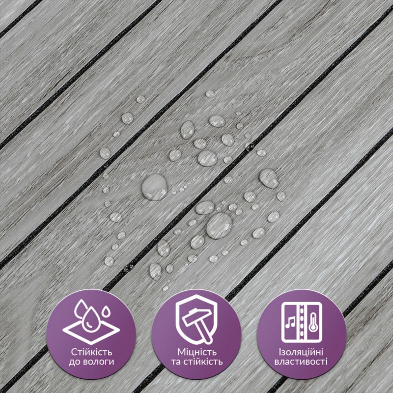• Легкий догляд: Вінілові рейки легко миються, не вимагають спеціальних засобів для очищення і не вбирають бруд.