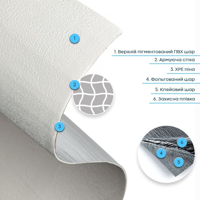 • Захисна фольгована плівка: оберігає клейовий шар від пересихання та забруднення, легко знімається під час монтажу.