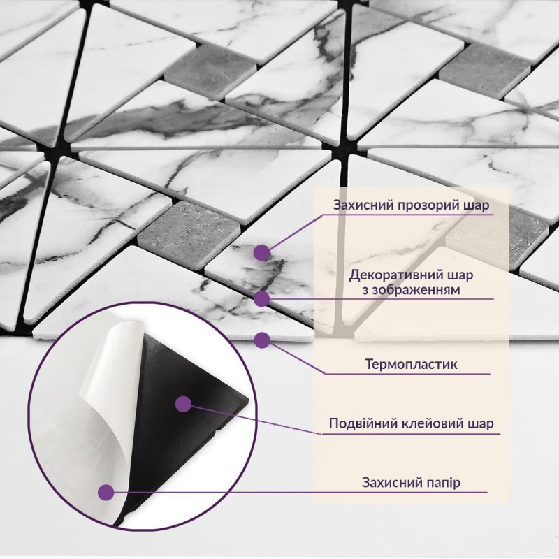 Зняти захисну плівку зі зворотного боку плитки, щоб відкрити клейку поверхню.