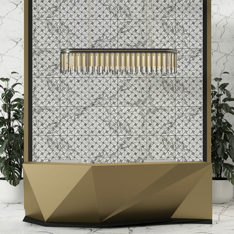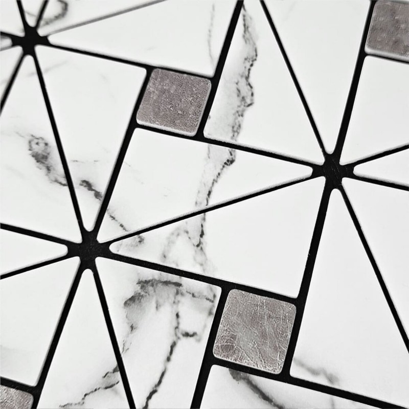 Плитка з ПЕТ (поліетилентерефталату) часто використовується для створення мозаїчних візерунків та декоративних елементів. PET - це пластичний матеріал, який має цілий ряд переваг: легкість, міцність і стійкість до впливу вологи. Цей матеріал може бути використаний для створення внутрішнього оздоблення як у житлових, так і у комерційних приміщеннях.