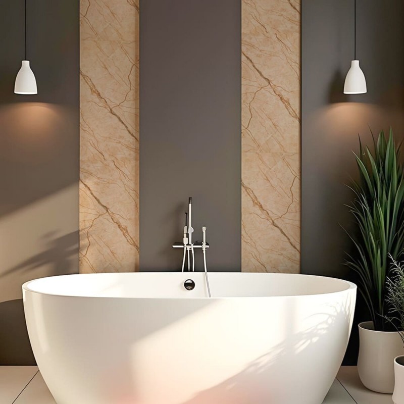 Плитка має різні дизайни, включаючи кольори, візерунки та текстури, що імітують натуральні матеріали та робить її придатною під різні інтер'єрні рішення.