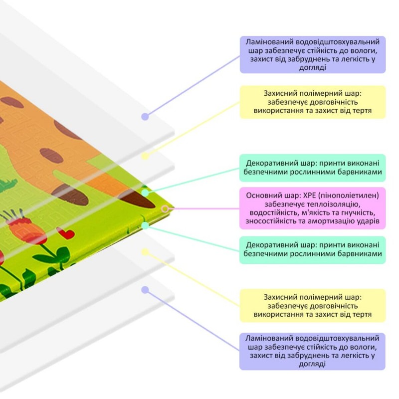 - Не пропускає холоду, а значить дитині буде комфортно грати на підлозі, навіть на плитці;