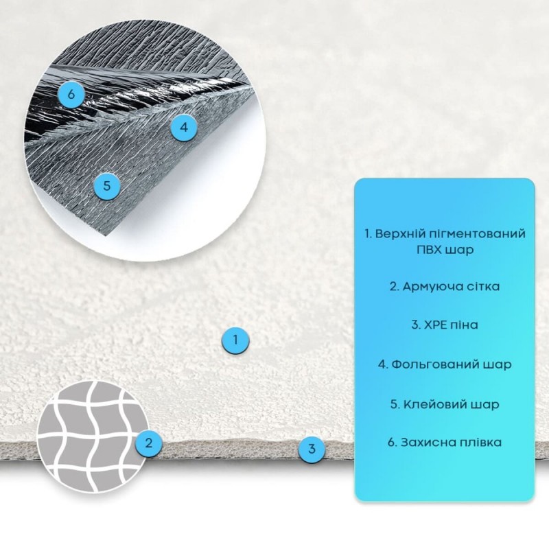 • Фольгированный слой выполняет две ключевые функции: он отражает тепловые волны, обеспечивая дополнительную теплоизоляцию, а также защищает материал от влаги. Благодаря этому обои становятся более устойчивыми к влажной среде и отлично подходят для использования на кухнях. Кроме того, фольгированный слой дополнительно укрепляет ХРЕ-основу, предотвращая ее растяжение и сохраняя форму материала при монтаже и эксплуатации.