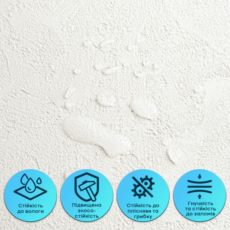 • Устойчивость к влаге и пару Гибкая штукатурка не впитывает воду, не набухает и не деформируется под воздействием влаги. Материал устойчив к парам, не способствует образованию плесени и подходит для помещений с повышенной влажностью — кухонь, ванных комнат. Может применяться в зоне кухонного фартука (при отступлении от плиты на 25-30 см).