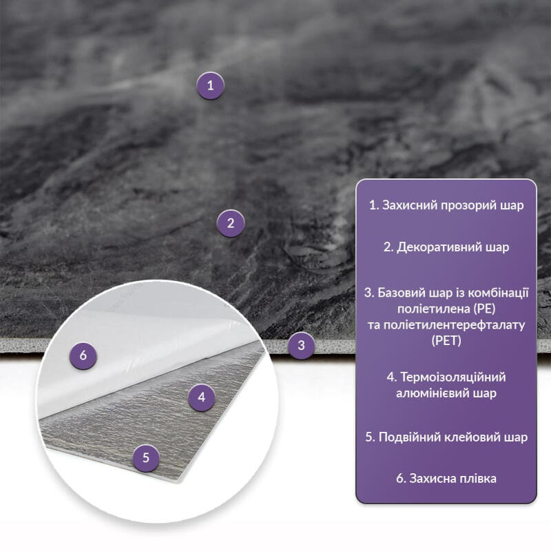 - 3. Ізоляція: плитка має звукову та теплоізоляцію завдяки наявності повітряних прошарків та додатковому алюмінієвому шару;